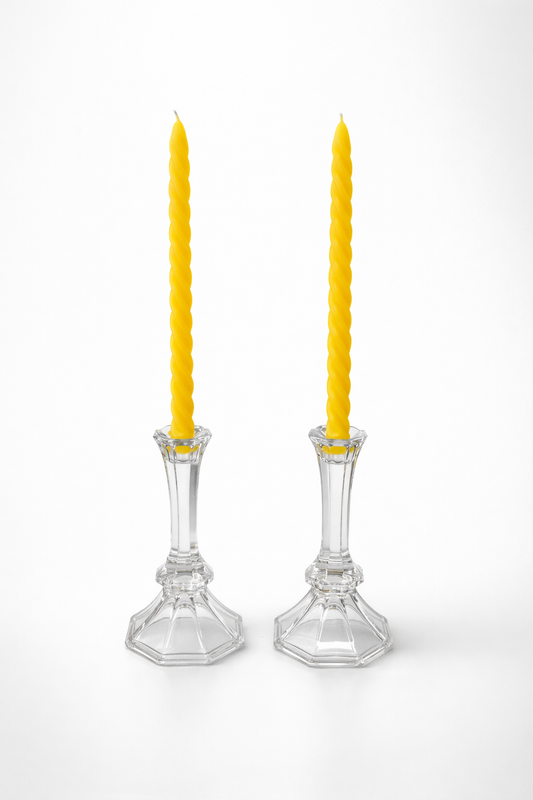 Hand-poured, clean-burning beeswax candles that accompany these holders