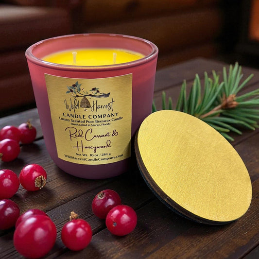 Red Currant & Honeywood – 10 oz Scented Pure Beeswax Candle in Crimson Glass Vessel | Luxury Scented Candle with Red Currant, Honey, Coconut, Saffron, Vanilla & Sandalwood
