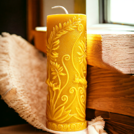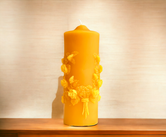 4" wide Pure Beeswax Pillar Candle up to 9" tall