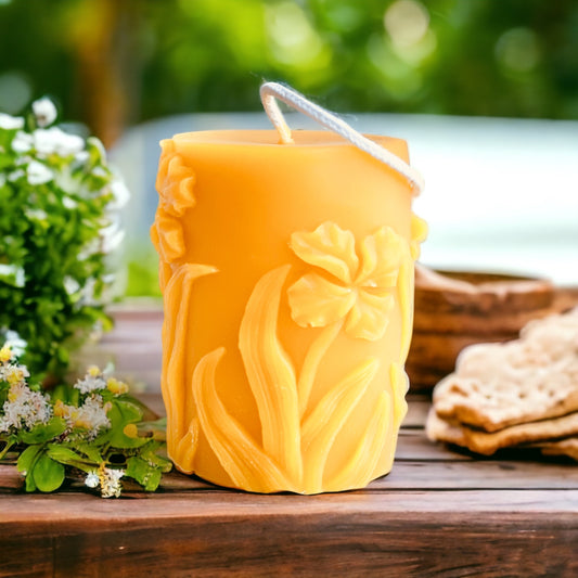 Beeswax Candle - Wildflower Design Pillar