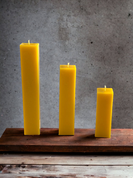 Square Pillar Pure Beeswax Candles - 2 inches Wide up to 12 inches Tall