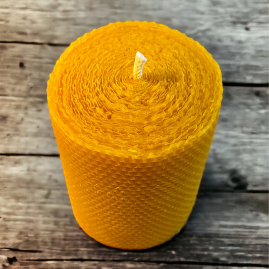 Large 4 inch wide Rolled Honeycomb Design Pure Beeswax Candle