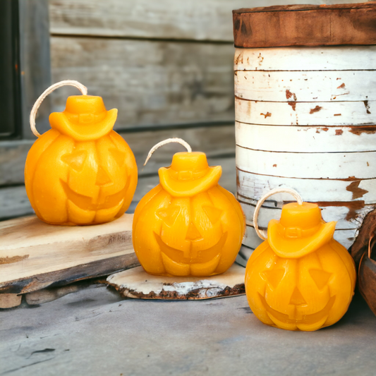 Jack O Lantern Pumpkin Pure Beeswax Candle - Set of 3