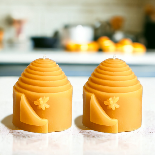 4-Pack Mini Beehive Skep with Bees Beeswax Candles