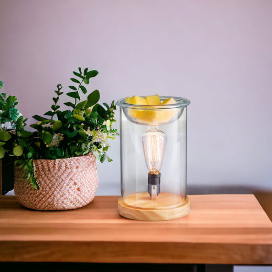Wood and Glass Vintage Bulb Illumination Fragrance Wax Warmer