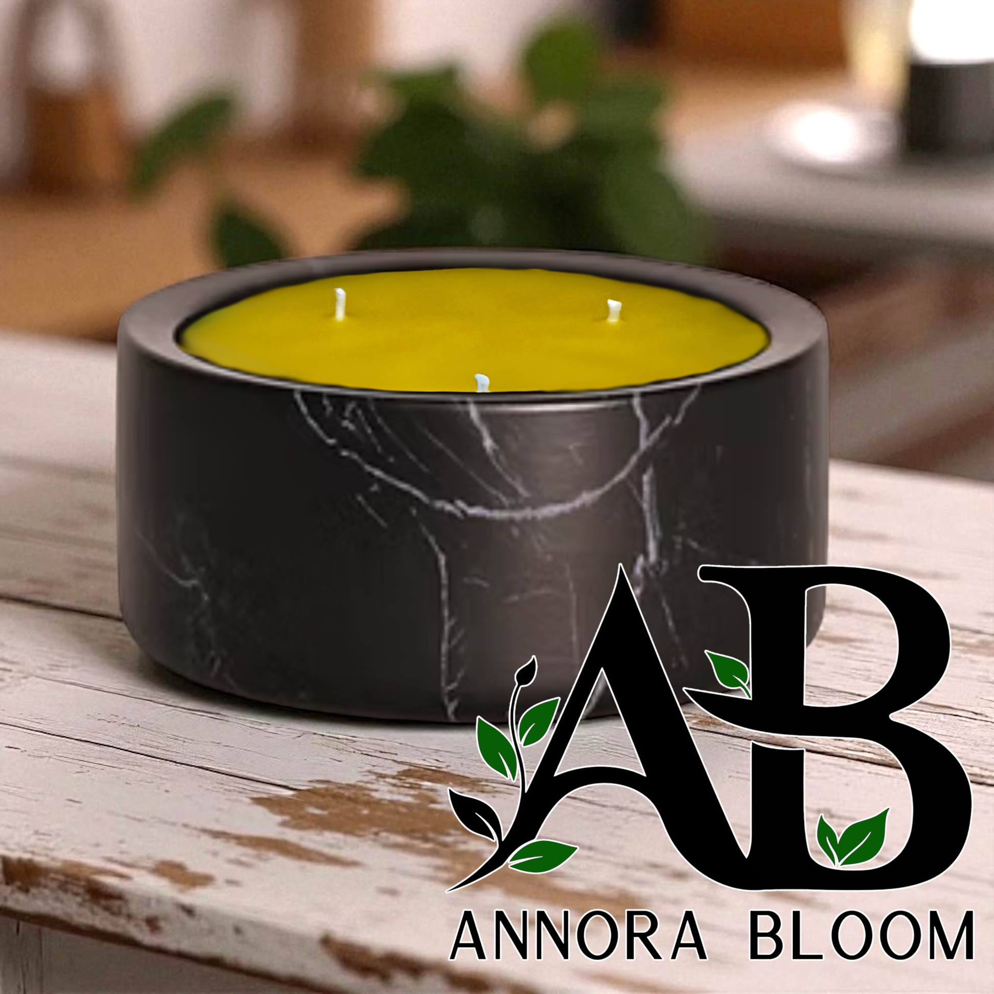 Annora Bloom Pure Beeswax Triple Wick Candle – 13 oz Marble Ceramic Bowl