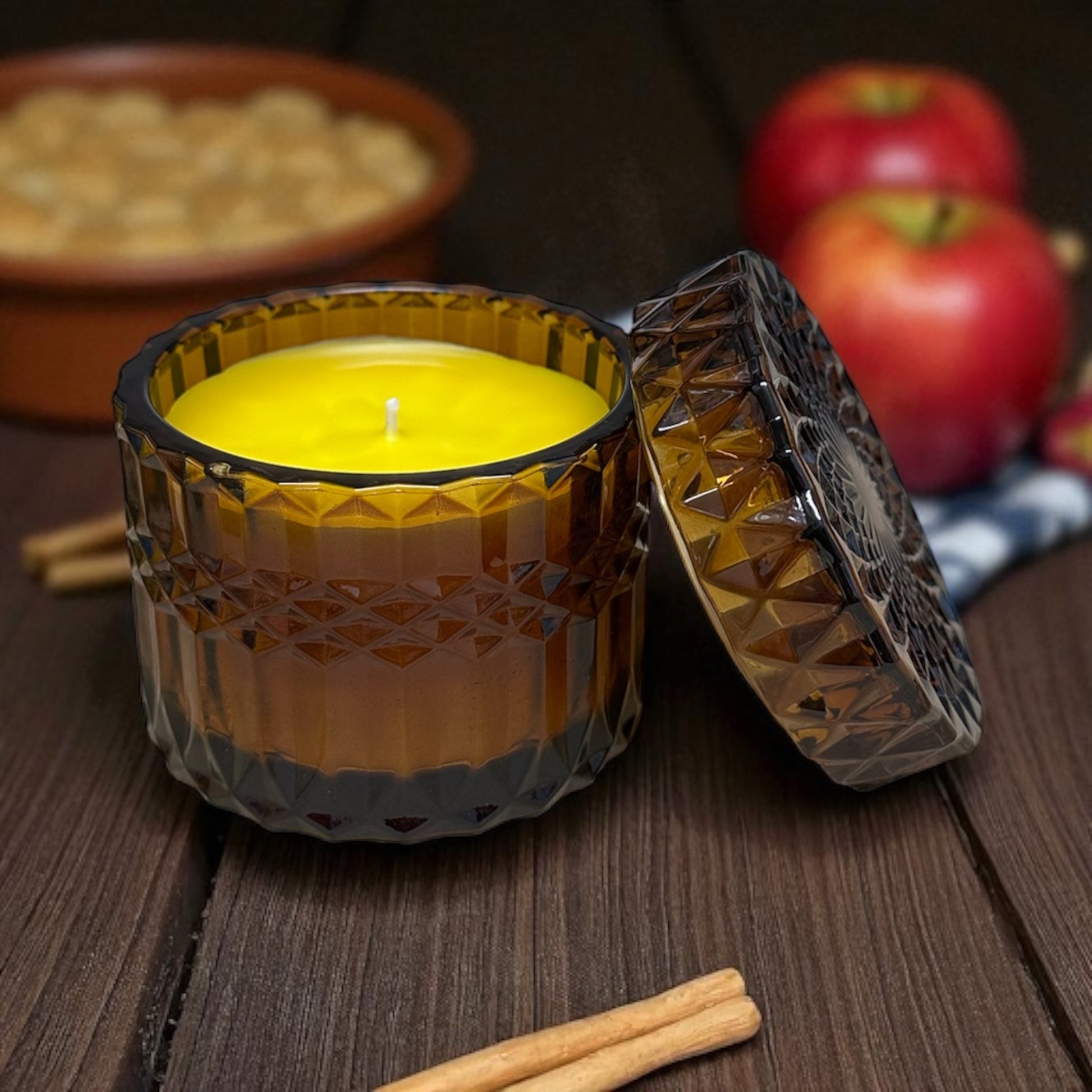 Apple Maple Crumble – 6 oz Beeswax Candle in Citrine Crystal Glass Vessel (Limited Edition)