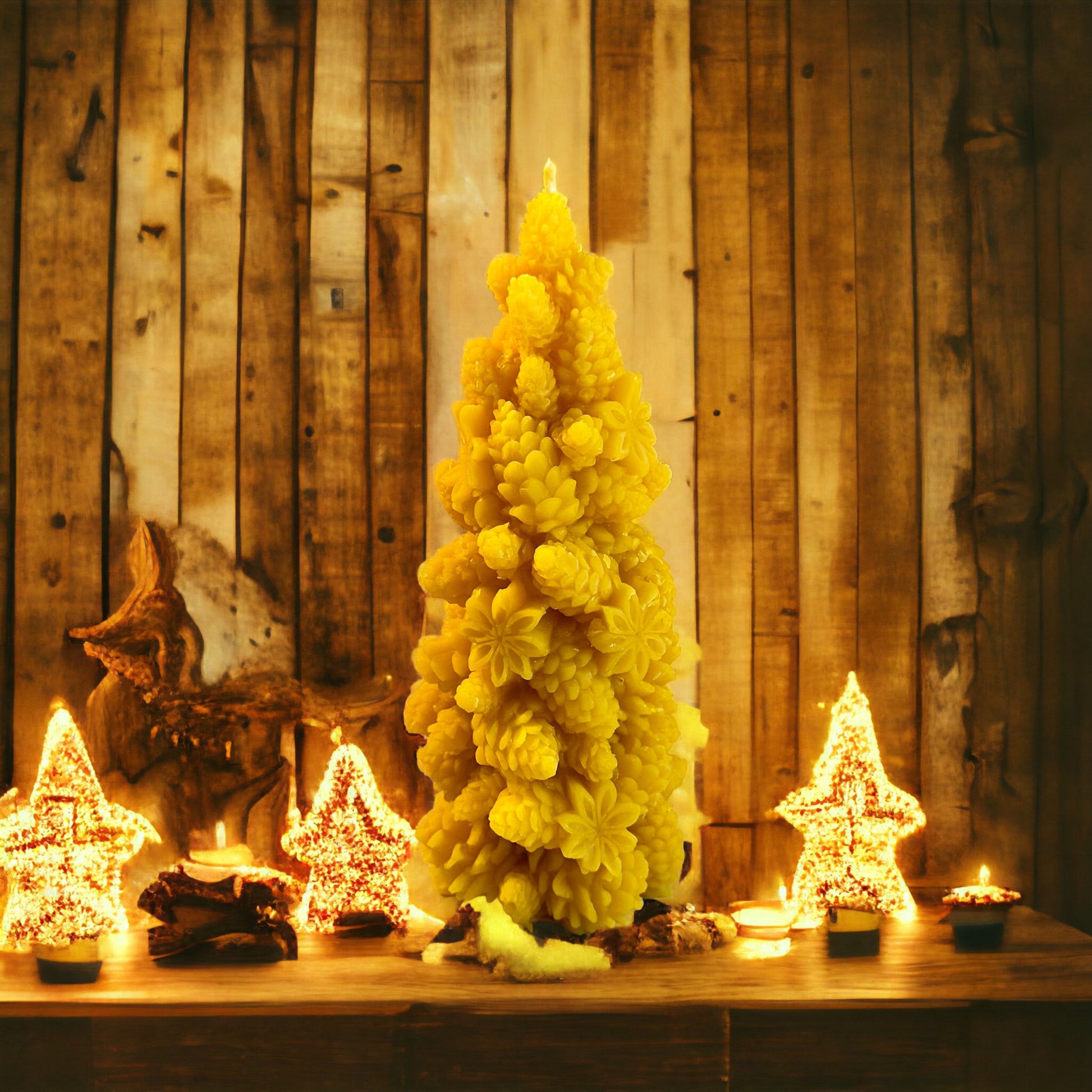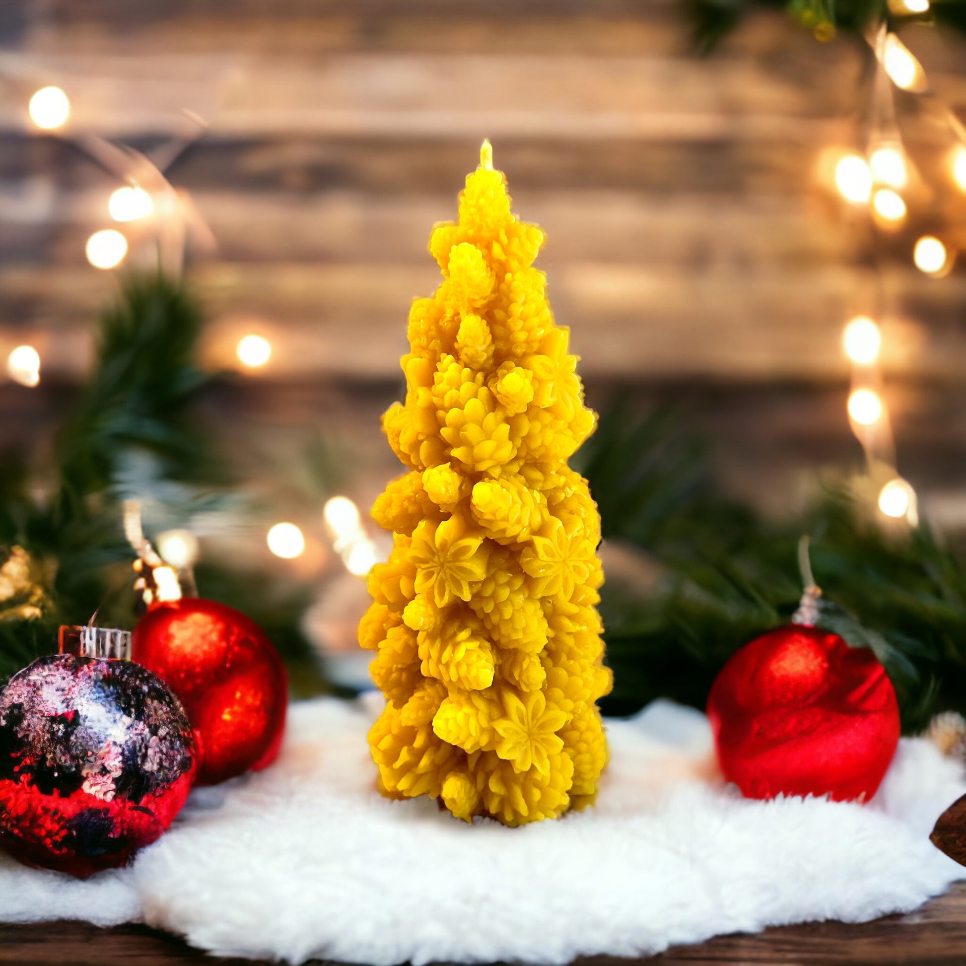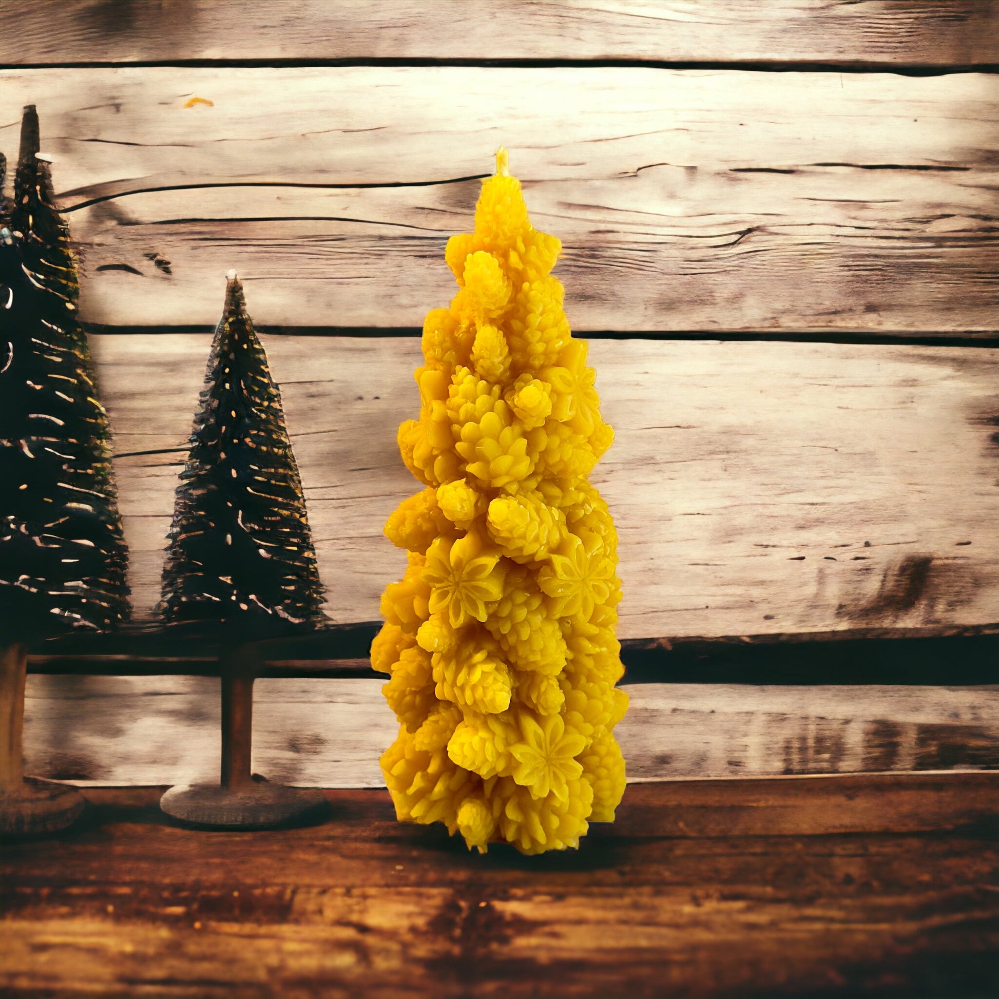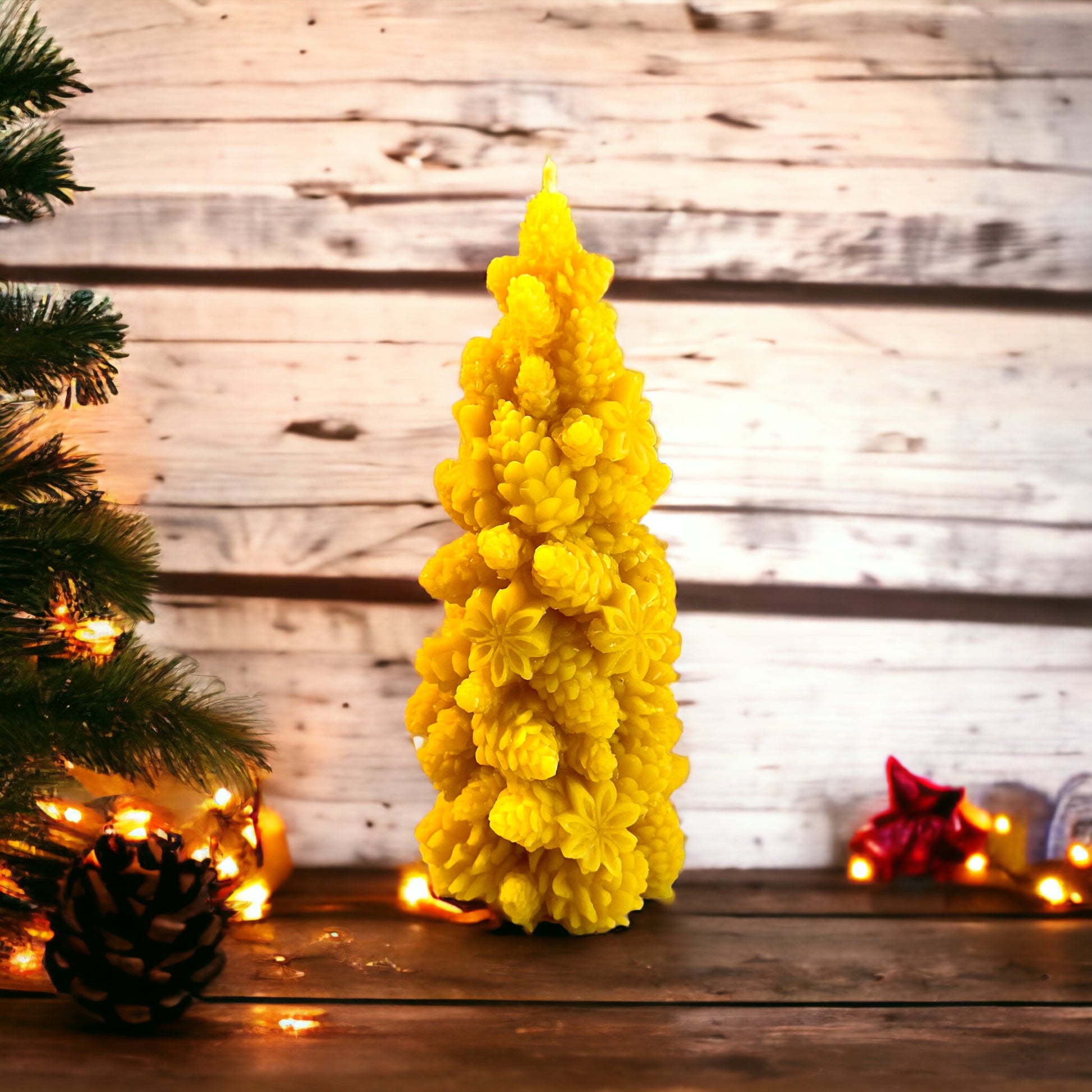 Christmas Tree Shaped 100% Pure Beeswax Candle - Unique Detailed Design