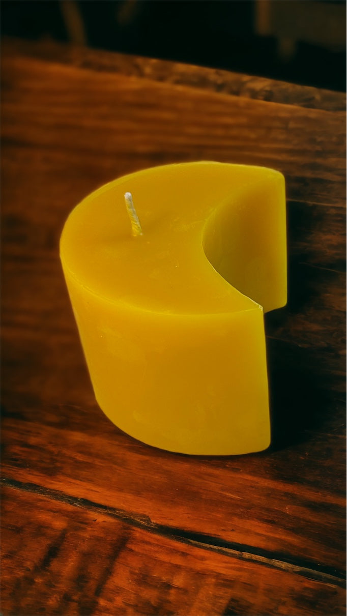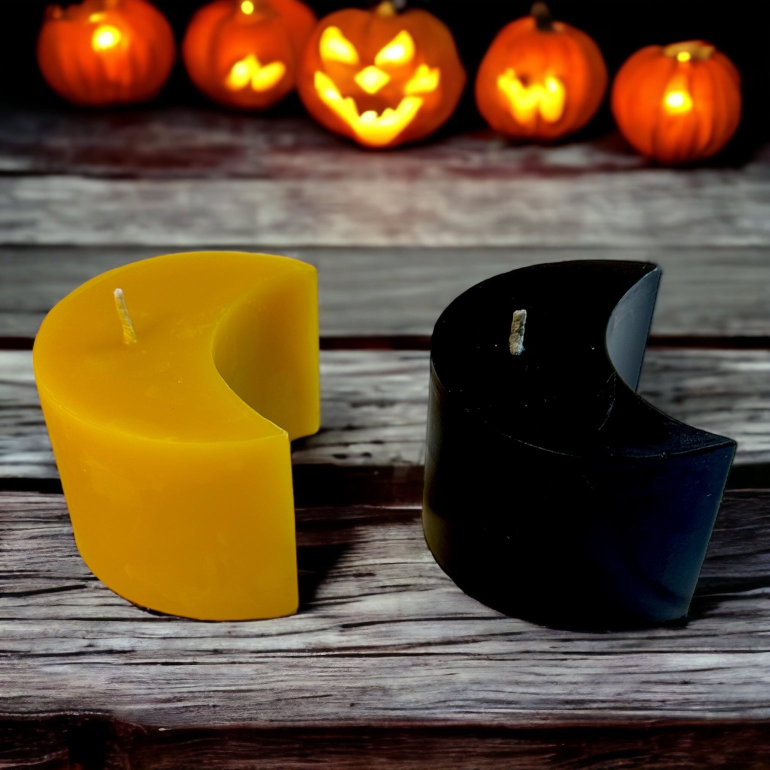 These unique and charming half moon / crescent moon beeswax candles, available in either natural honey gold color or in black, make a beautiful addition to your space. Use as a halloween candle, spell candle, prayer candle, or witchy decor, these homemade candles are sure to add flair and uniqueness wherever you place them. This candle adds a different rustic touch and looks beautiful while it glows behind the brightest flame that exist in candles -- specifically, only found in beeswax candles!
