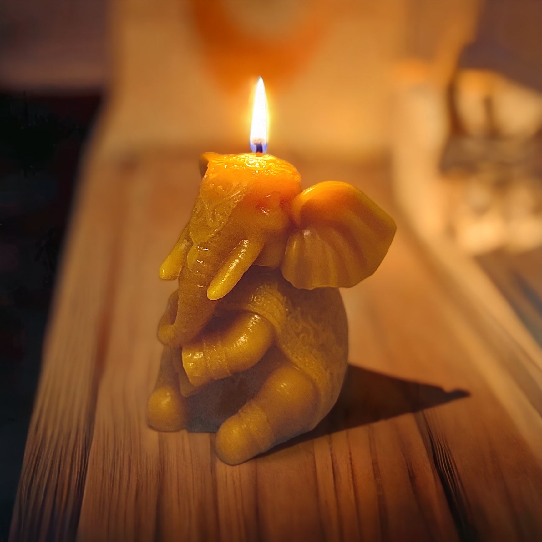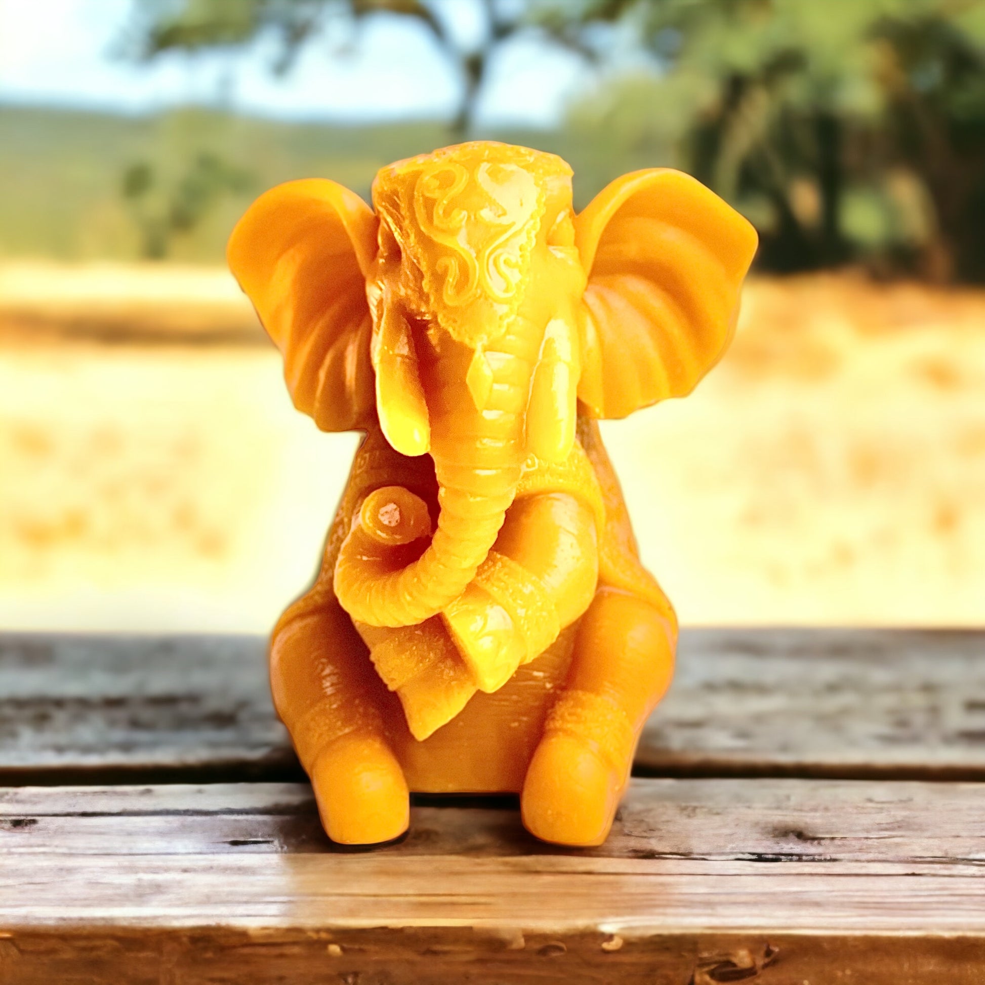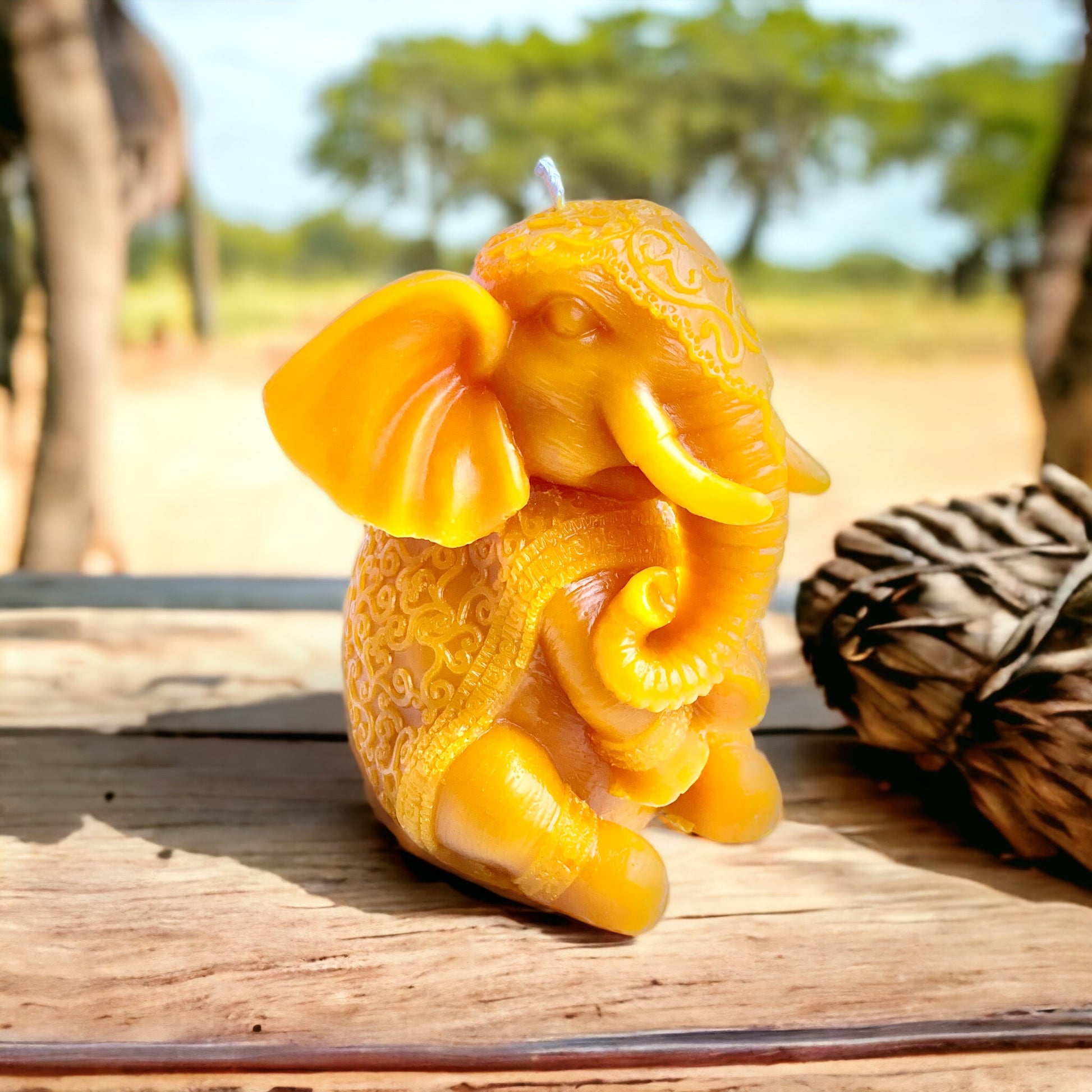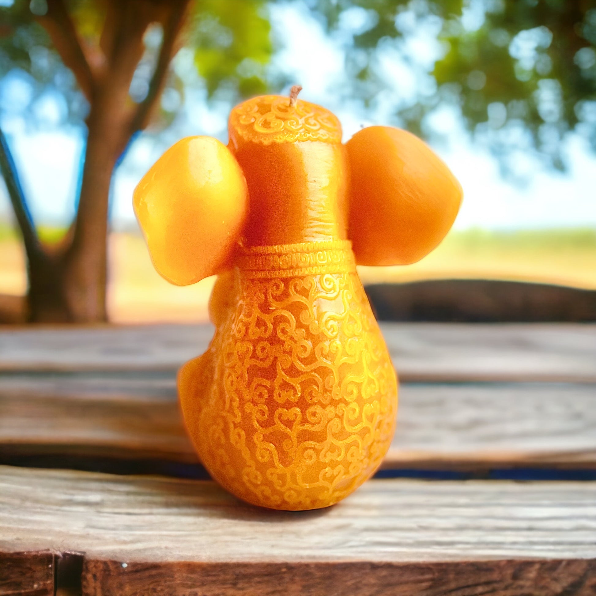 This intricately designed Elephant Design Pure Beeswax Candle, in the likeness of a mesmerizing elephant statue, will be sure to impress and add a beautiful touch of decor to your space. Adorned with beautiful patterns which engulf the Ganesha Statuesque candle, this handmade candle won't go a day without compliments. A great gift idea for those that are fans of a carved candle, decorative candles, homemade candles, unique candles, or elephant decor -- any recipient will be enchanted by this candle. No chemicals, toxins, or artificial ingredients are used in creating this. Made with only 100% pure natural beeswax and an organic cotton braid wick (NO zinc), you can rest assured knowing that you are burning a completely clean wax that is said to emit negative ions which purify the air around you. The scent gives off a subtle, sweet natural hint of honey -- straight from the hive, to your home!