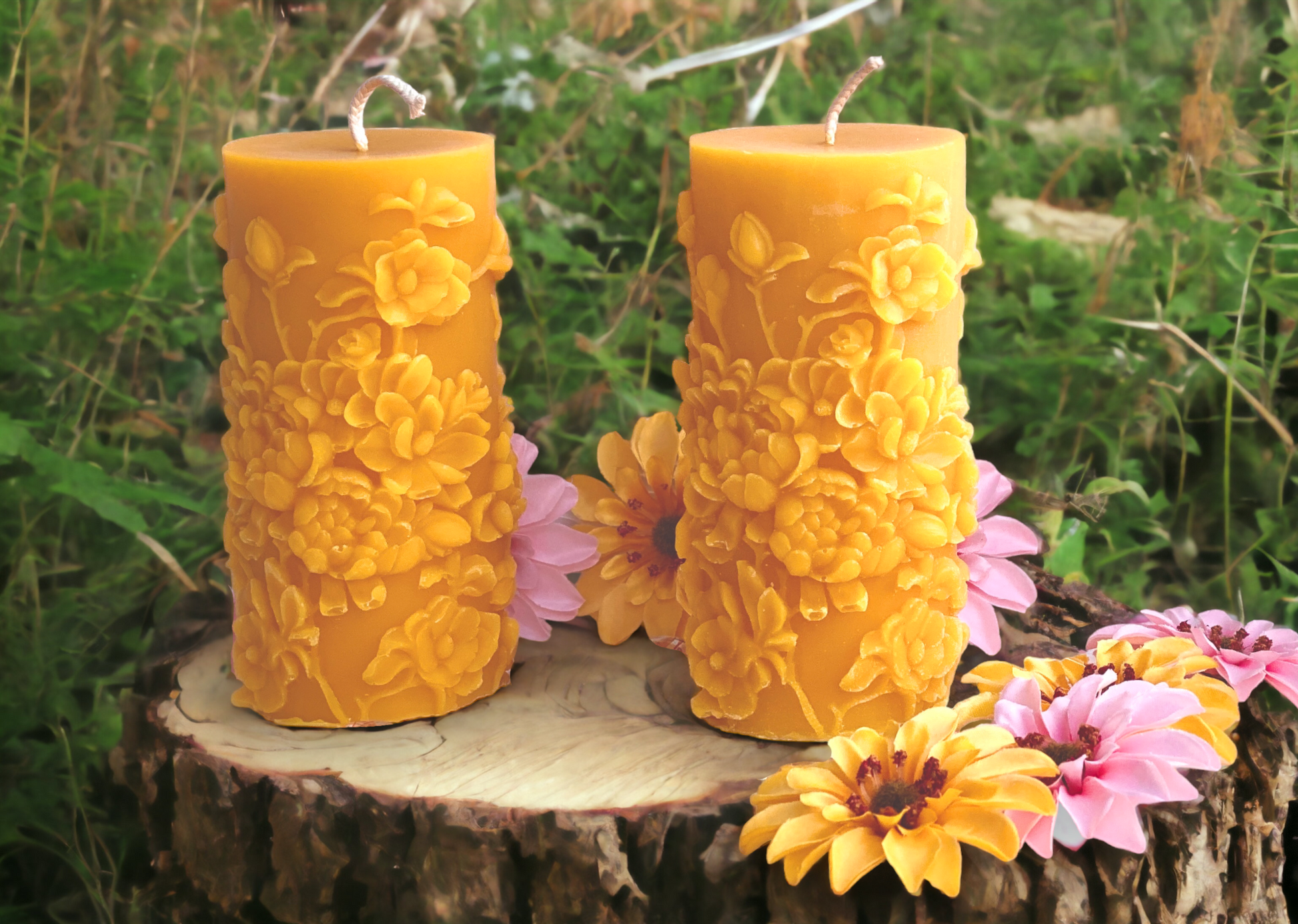 Floral Beeswax Pillar Candle