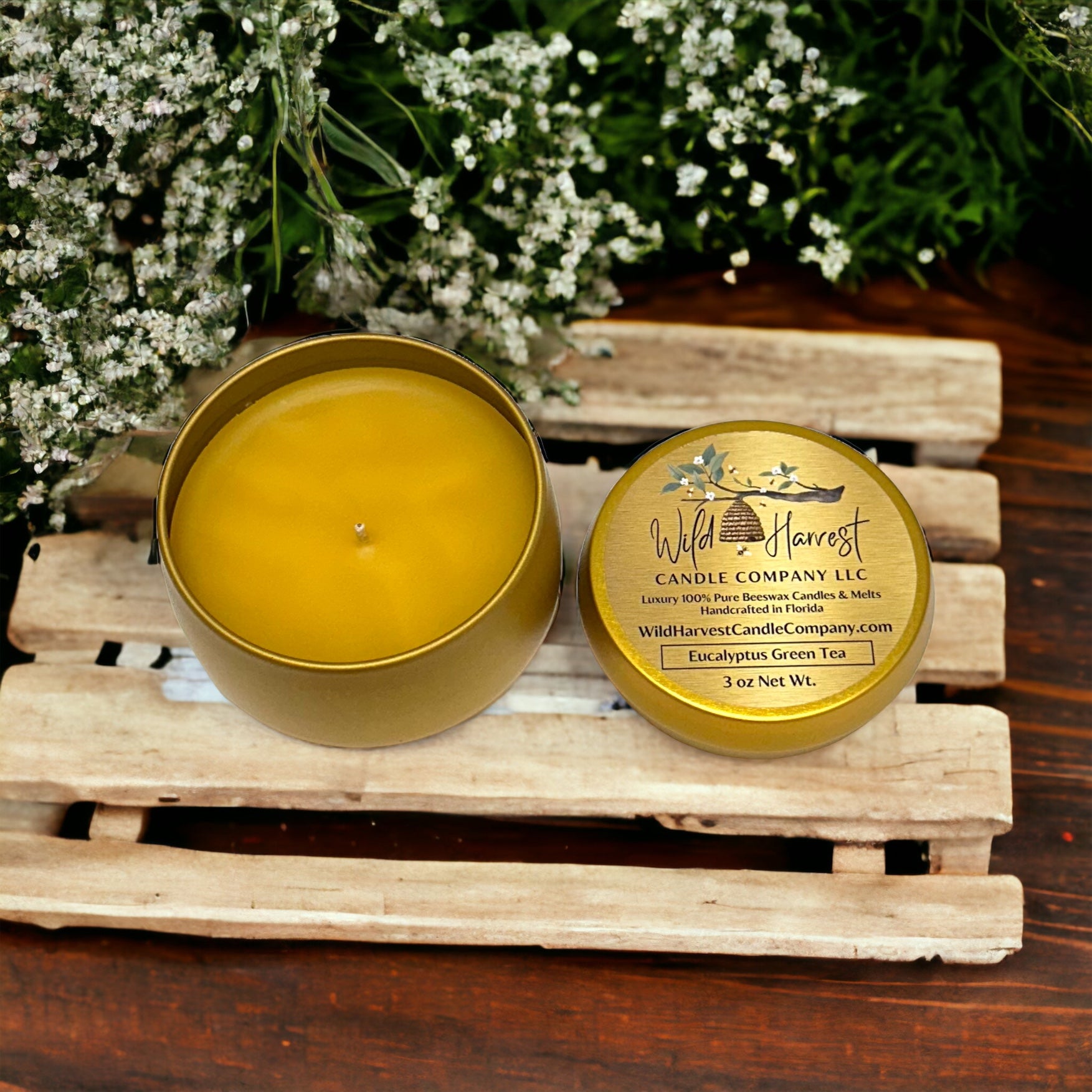 Radiating the allure of pure elegance, our mini gold candle tins are perfect for smaller spaces and even perfect for travel! Despite their smaller size, these candles continue to exude a captivating aura, casting a gentle glow that reflects the magical essence that only beeswax can offer.