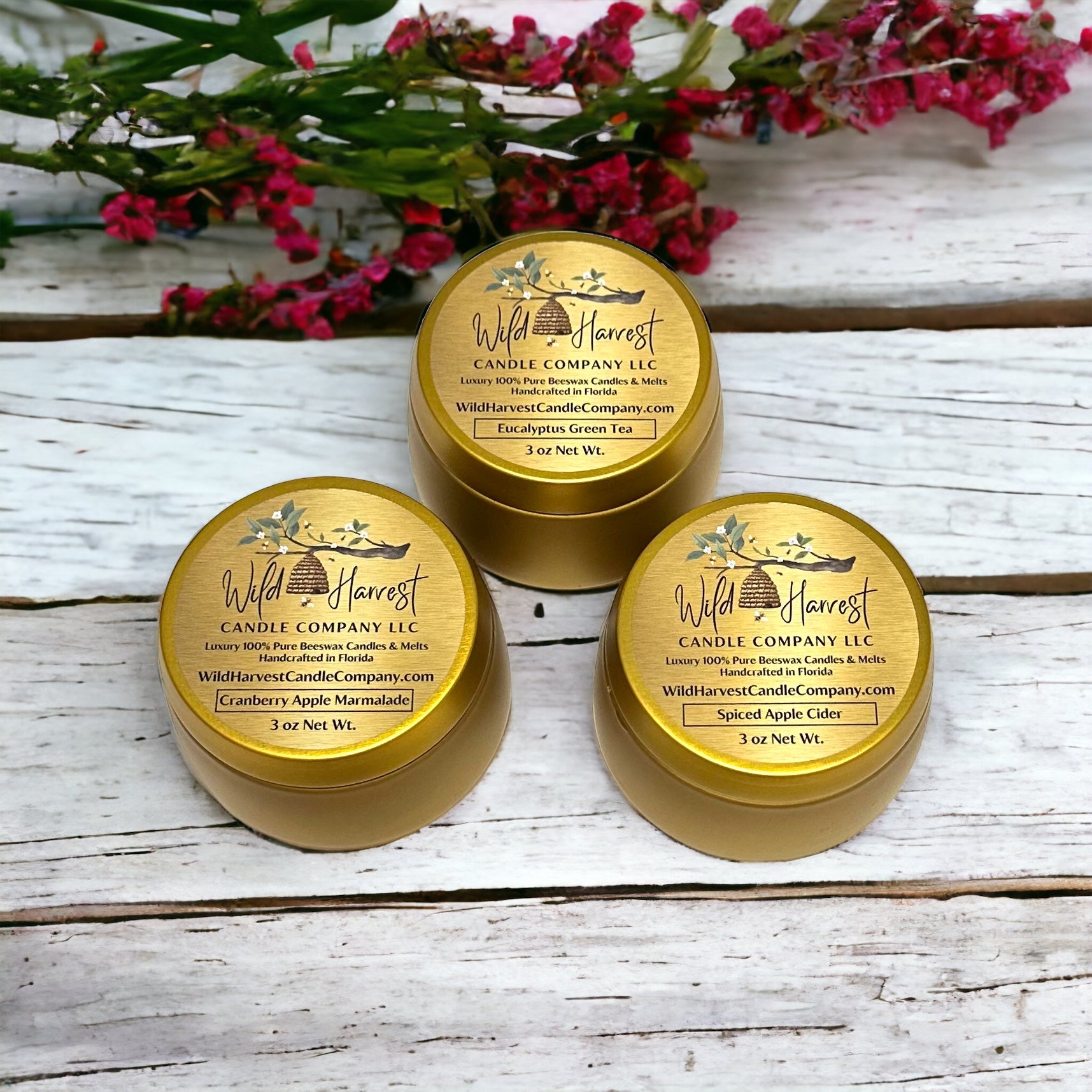 Travel Size Mini Beeswax Candle Tin Bundle - Set of 3 (3 oz Each) Choose Your Scents - Signature Collection