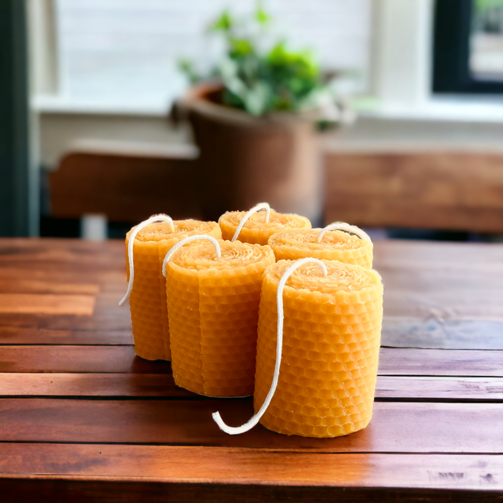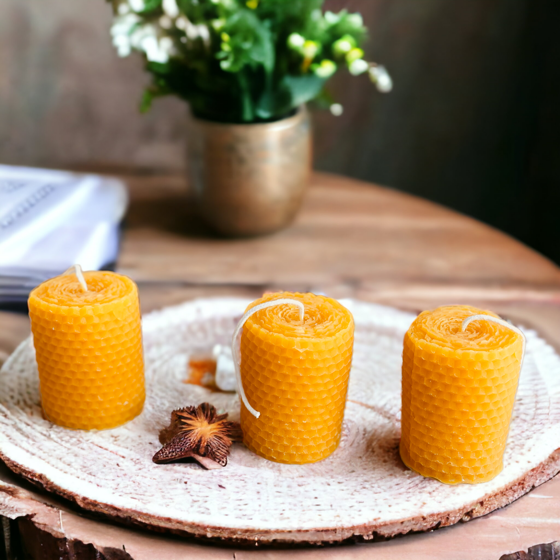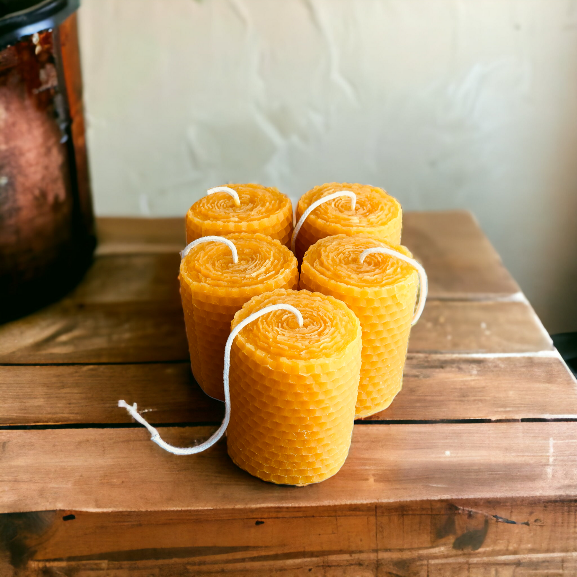 Honeycomb Rolled Design Pure Beeswax Mini Pillar- Votive Candle