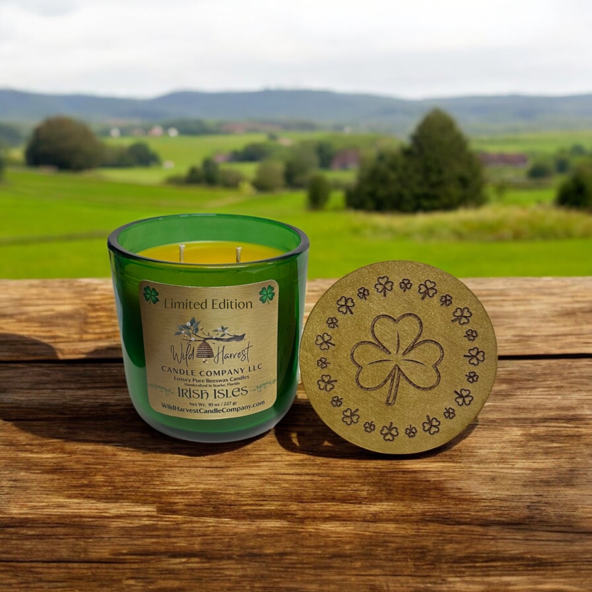 Irish Isles – 10 oz Pure Beeswax Candle | Emerald Green Luxury Double Wick | Petrichor, Moss & Driftwood