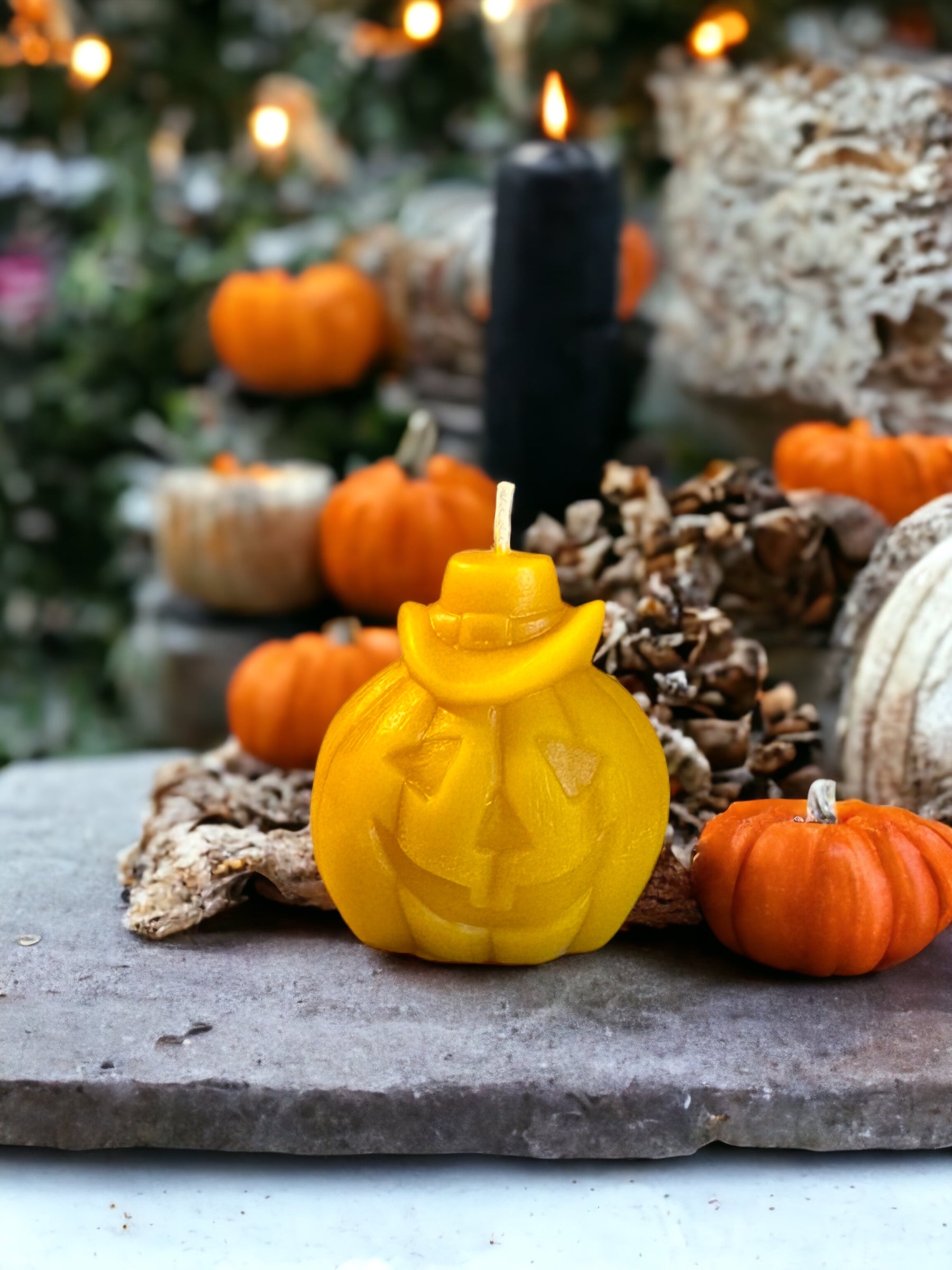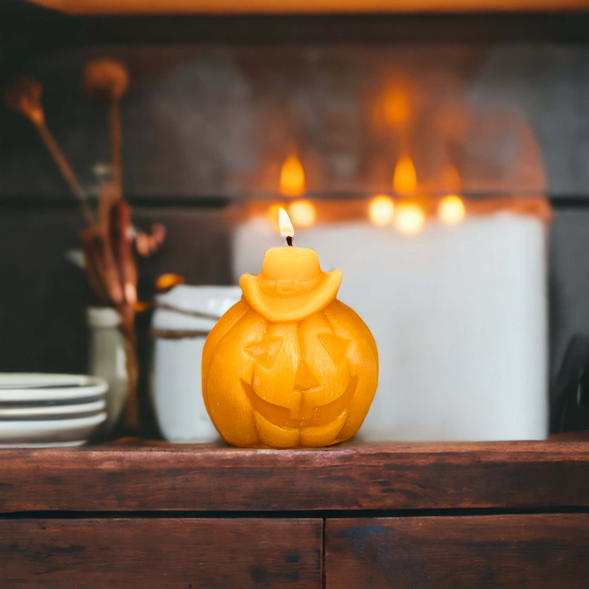 Jack O Lantern Pumpkin Pure Beeswax Candle - Set of 3