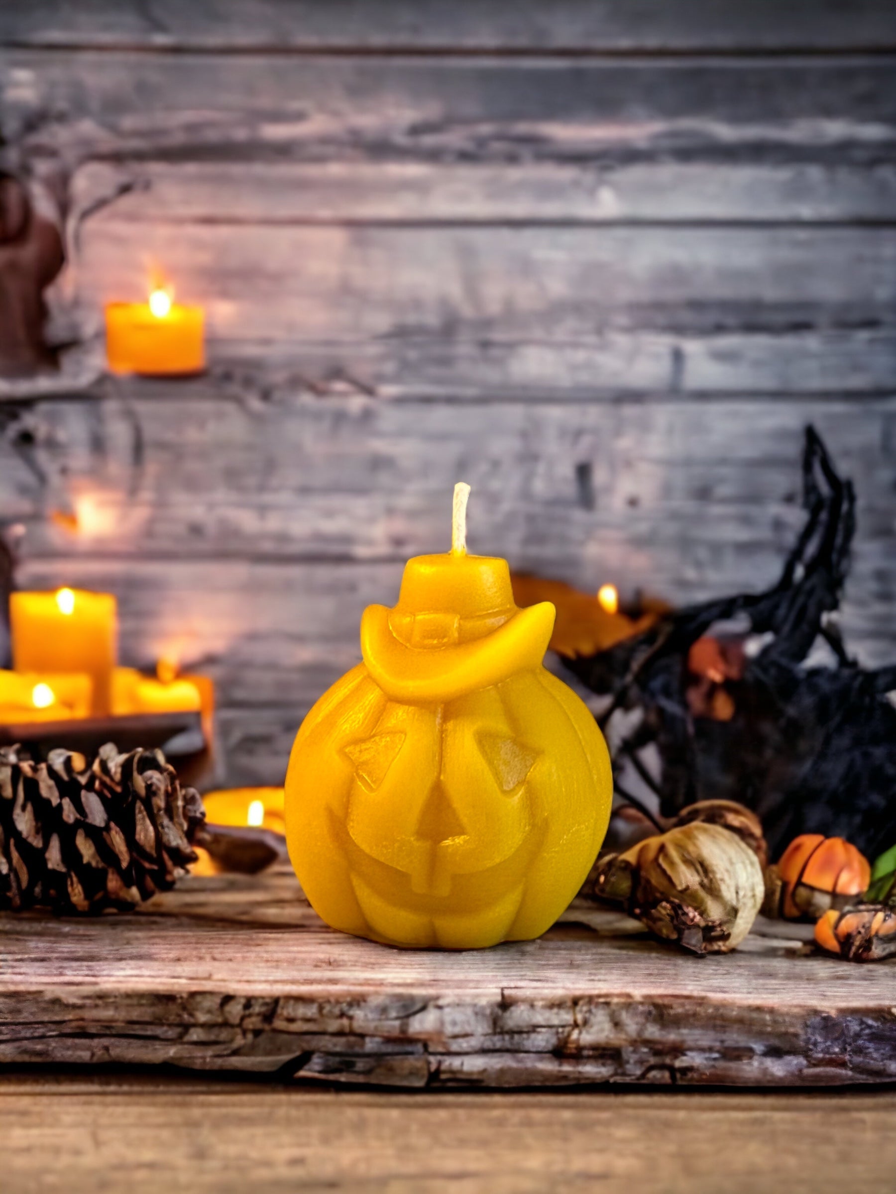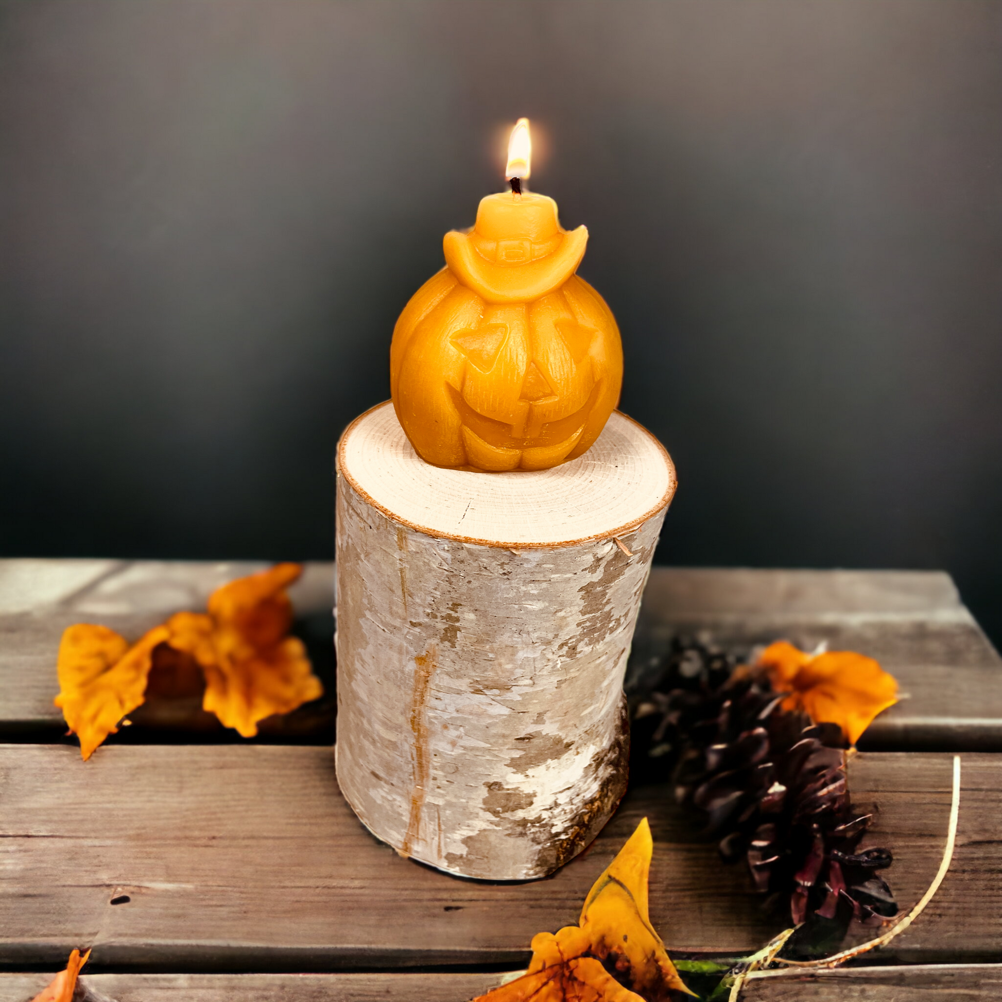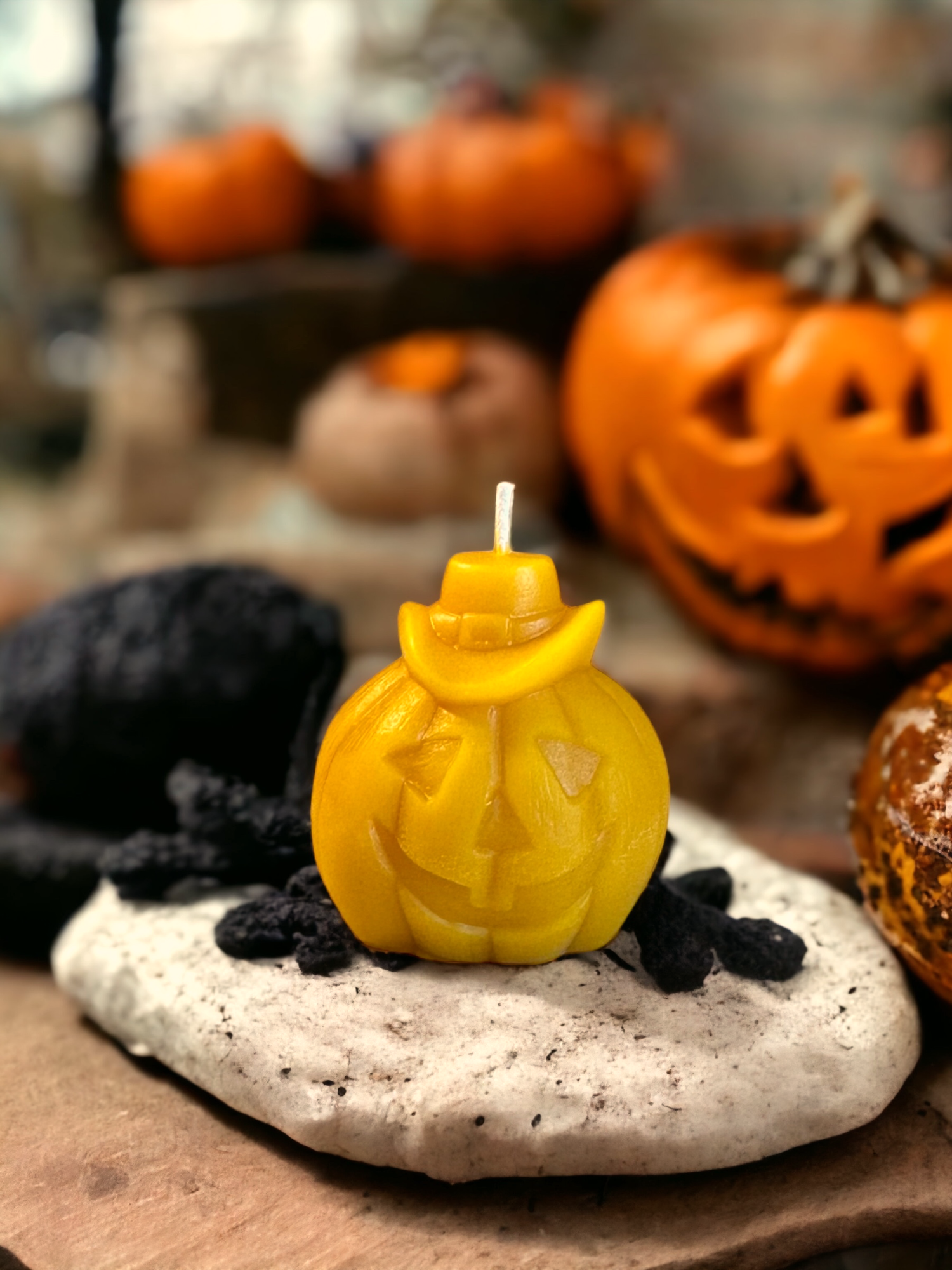 An adorable, petite jack o lantern candle! Made with 100% beeswax, this candle burns bright and warm, setting the perfect ambience for fall and the holidays to come. Perfect for your Halloween and Fall decor.