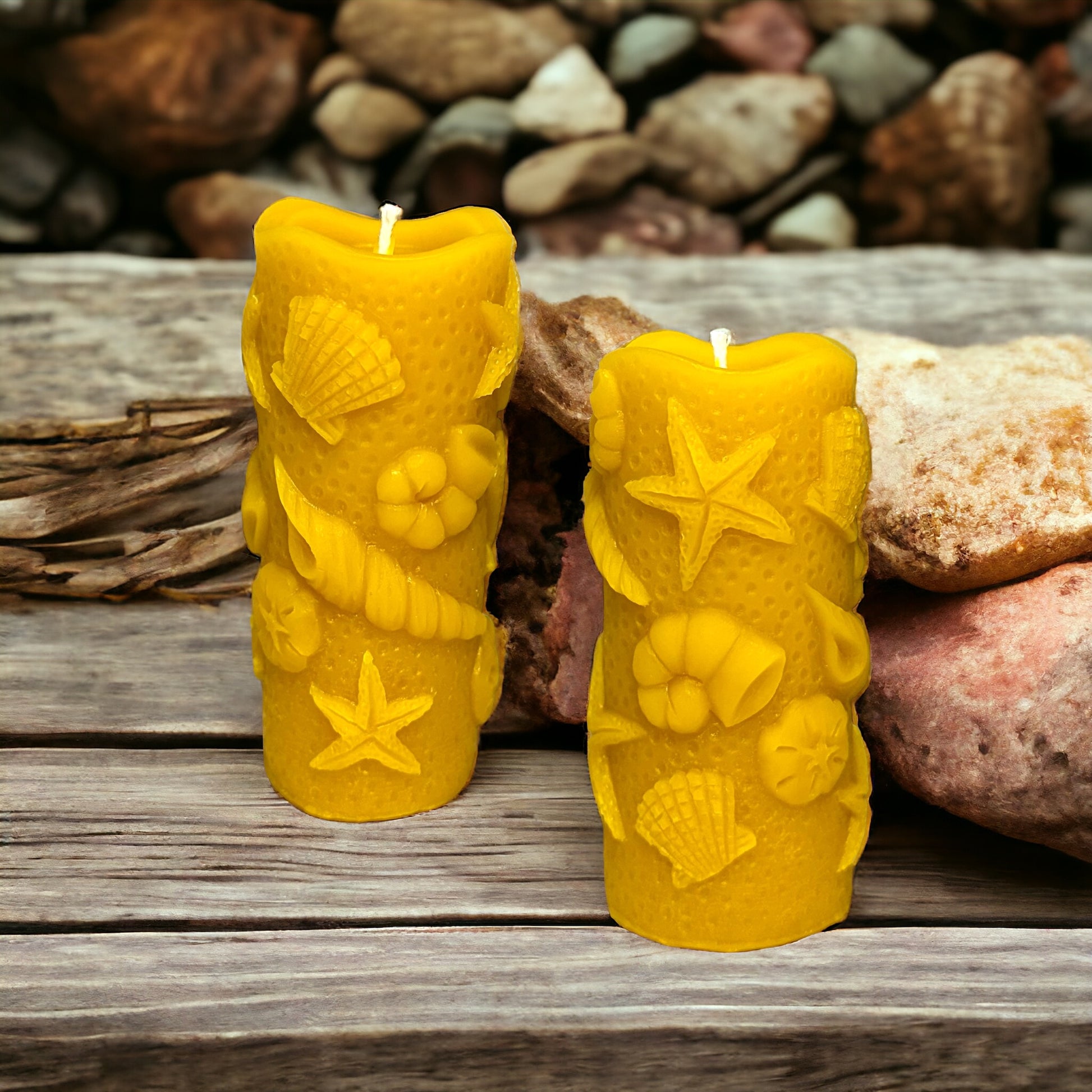 Ocean Shell Conch Starfish Beach Theme - Pure Beeswax Candle - Set of 2