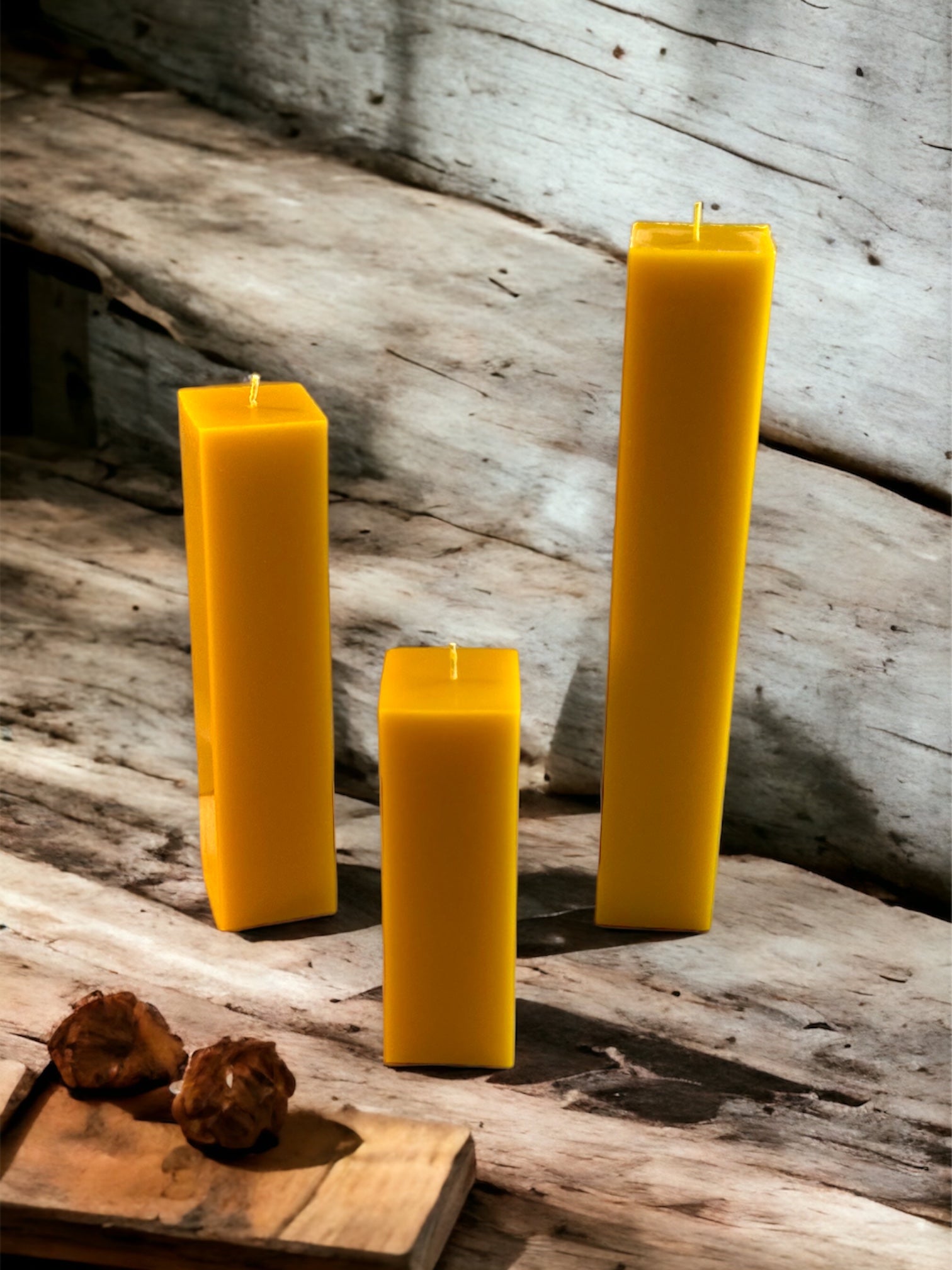 Square Pillar Pure Beeswax Candles - 2 inches Wide up to 12 inches Tall